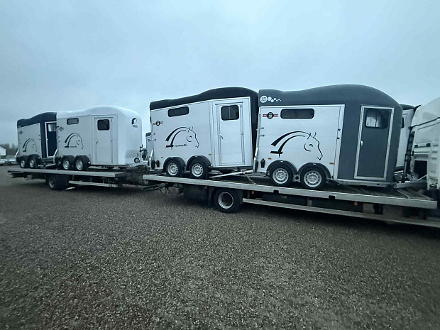 Vi börjar denna decembermorgon med att ta emot årets näst sista leverans ifrån Cheval Liberté och Debon. Några är beställda av kund men kanske är det din nästa hästtransport som kommit till oss?